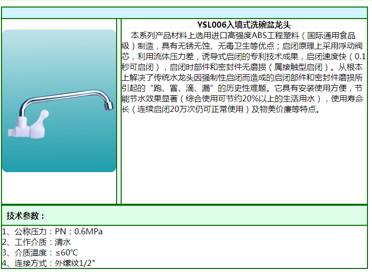【產(chǎn)品型號】YSL006入墻式洗碗盆龍頭